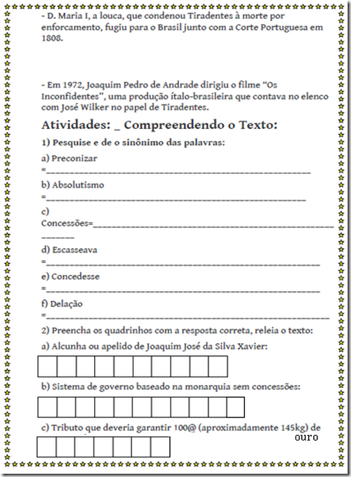 Atividades sobre Tiradentes — SÓ ESCOLA