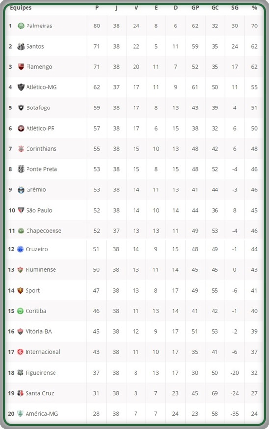 A classificação final da Série A 2016, com R 60 milhões em prêmios e 14 vagas Blog de Esportes