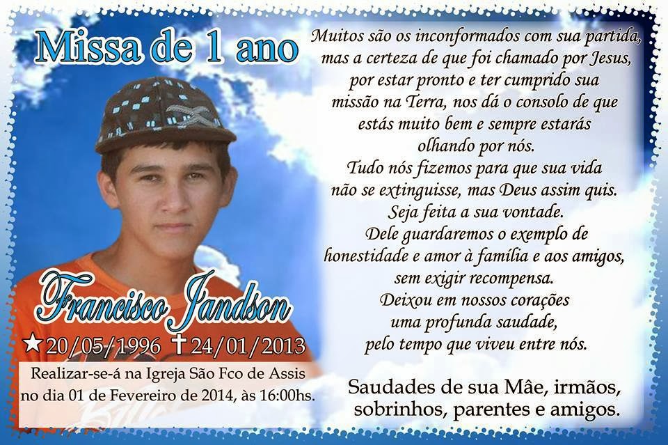 Blog do Evando Lima CONVITE DE MISSA De 1 ano de saudades do amigo Santos