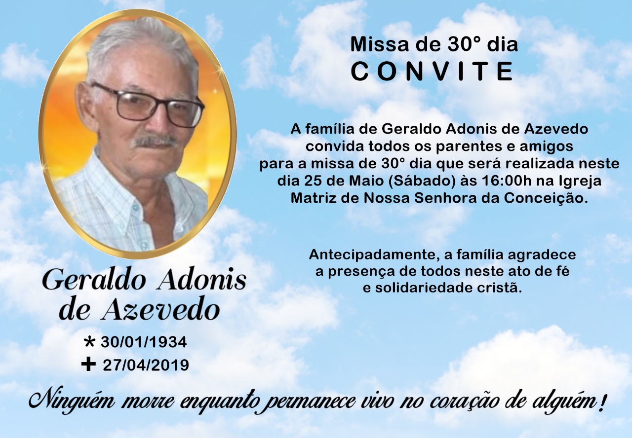 CONVITE MISSA DE 30º DIA DE FALECIMENTO DE “GERALDO DE CADOCHA” Blog Paulinho Barra Pesada