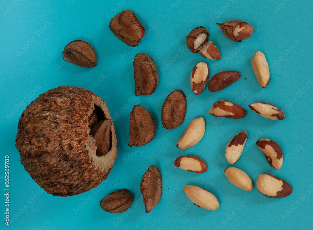 Fruto e sementes da castanhadoPará (Bertholletia excelsa), Lecythidaceae, Brazil nut Stock