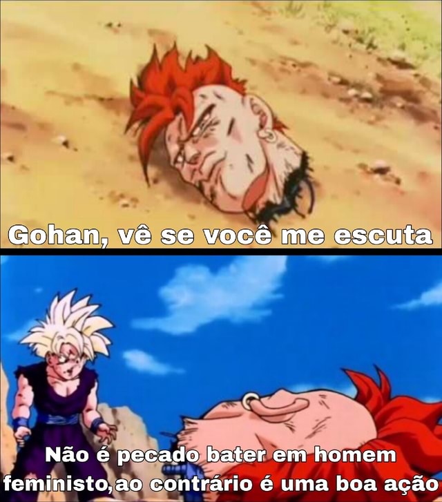 PRP Gohan, vê se você me escuta Não é pecado bater em homem feministo,ao contrário é uma boa