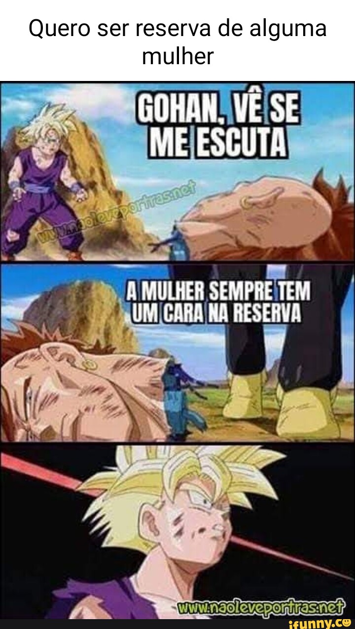 Quero ser reserva de alguma mulher GOHAN, VÊ SE ME ESCUTA MULHER SEMPRE TEM UM GARA NA RESENVA