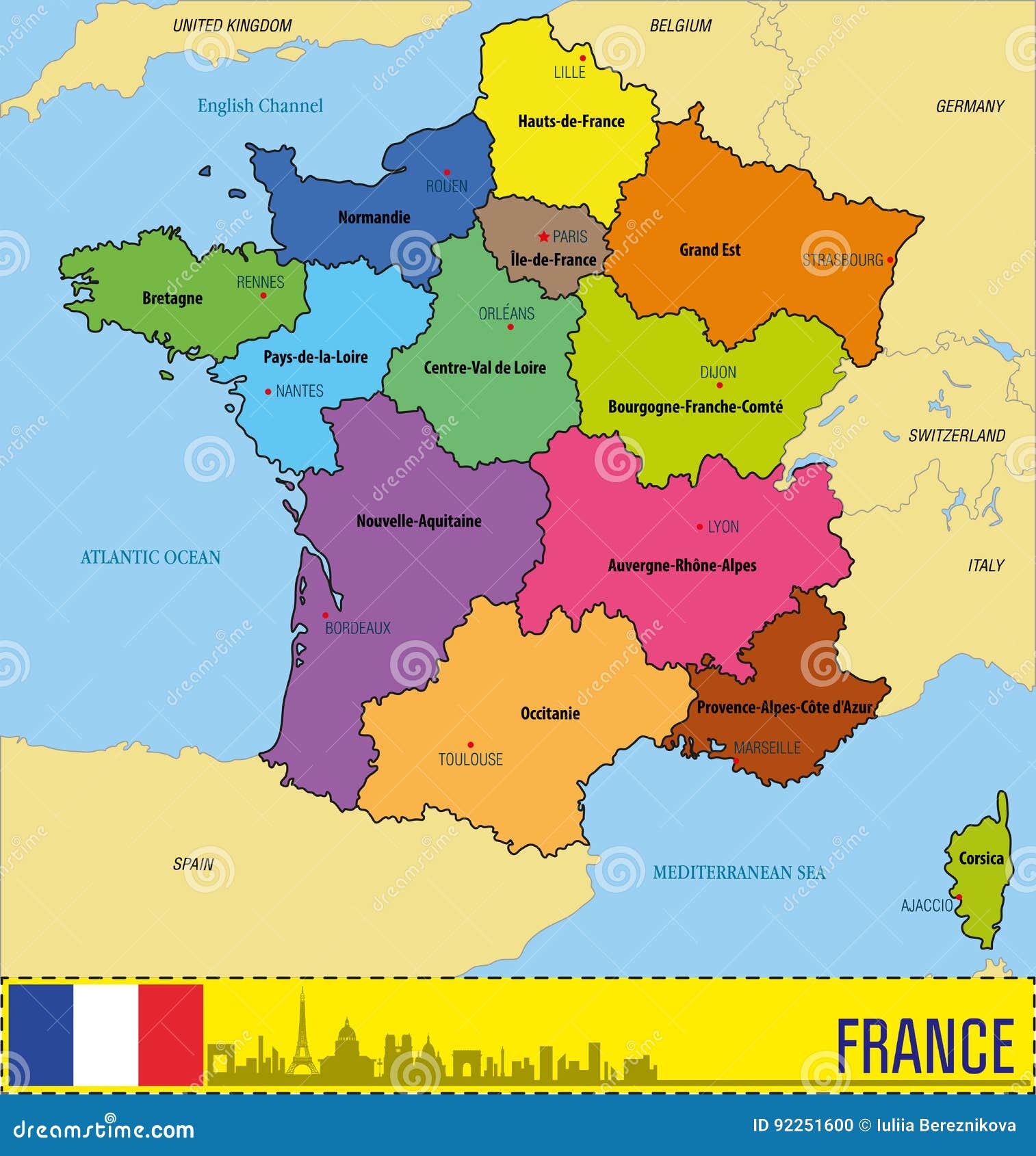 Mapa De França Com Regiões E Seus Capitais Ilustração do Vetor Ilustração de geografia