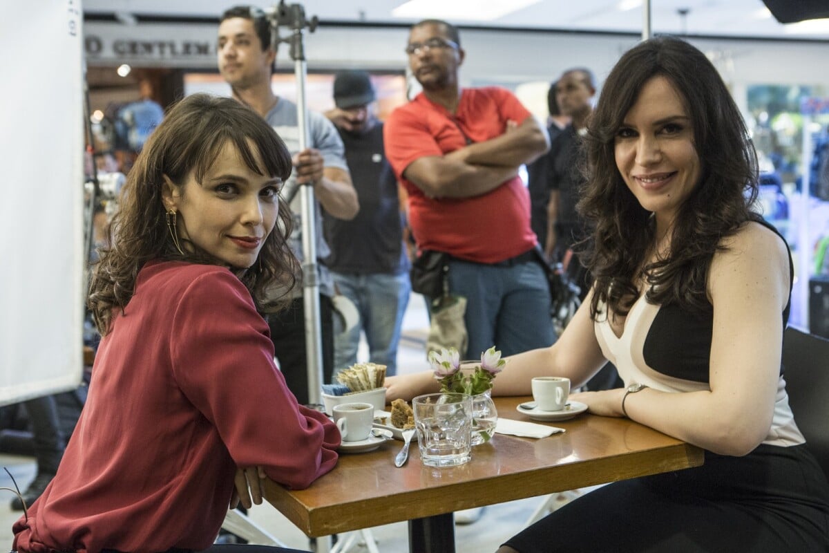 Irene (Débora Falabella) e Mira (Maria Clara Spinelli) se encontram em um restaurante, na novela