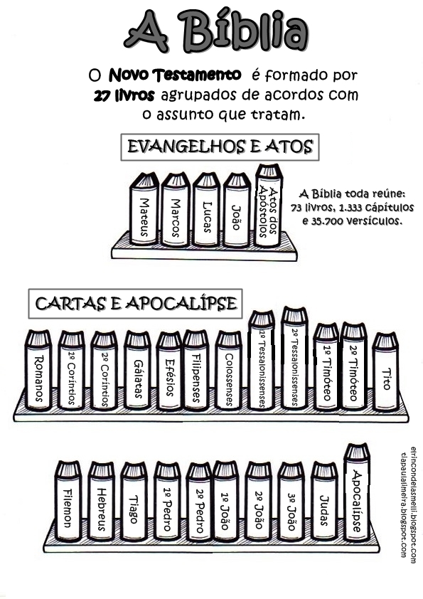 Livros da Bíblia para ordenar (com cores) Tags. Materiais. Baixe aqui o arquivo PDF com todos os livros da Bíblia para colocar em ordem, essa é uma atividade para crianças.. Nome E-mail * Mensagem * Sobre. Maior acervo de perguntas e respostas bíblicas para concursos e gincanas da internet, dinamize seu culto jovem e classes de estudo.