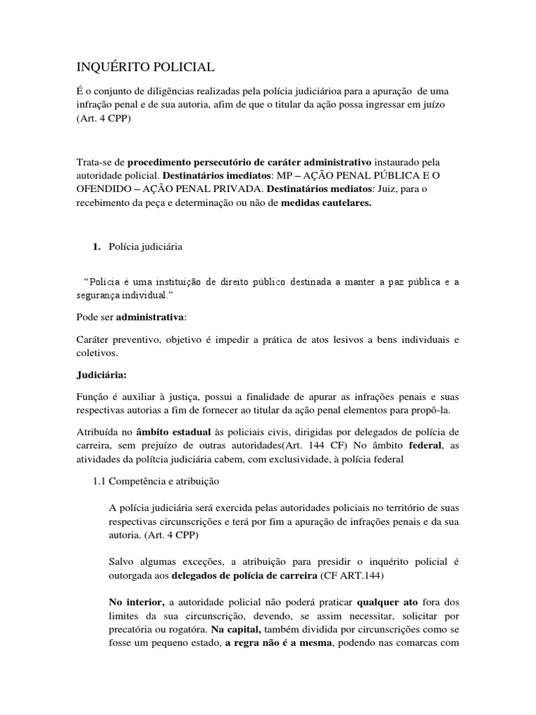 INQUÉRITO POLICIAL artigos 4º ao 23/Código de Processo Penal imagens) Inquérito