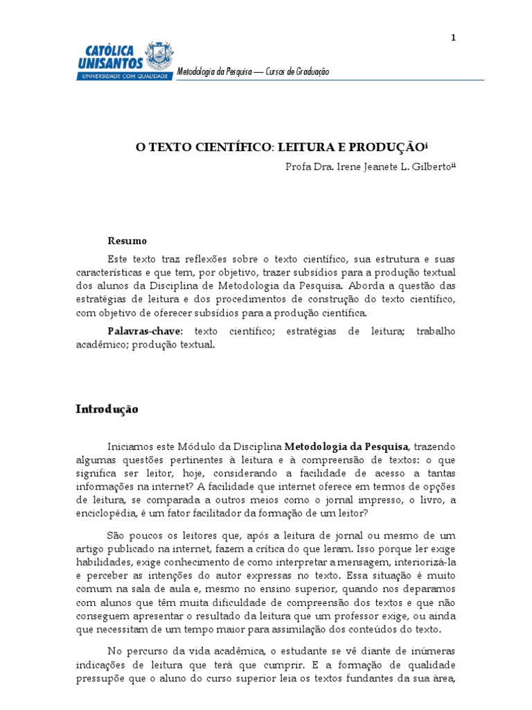 O Texto Cientifico Leitura e Producao Ciência Informação