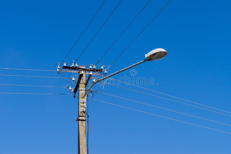 Poste De Luz Com Muitos Fios Bondes Foto de Stock Imagem de cloudless, linha 66551838