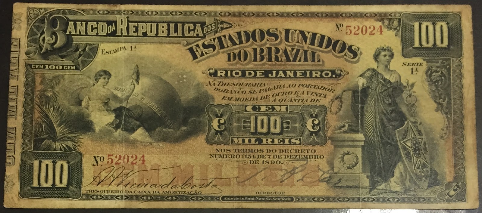 200 Mil Réis (Banco da República dos Estados Unidos do Brazil; 1st print) Brésil Numista