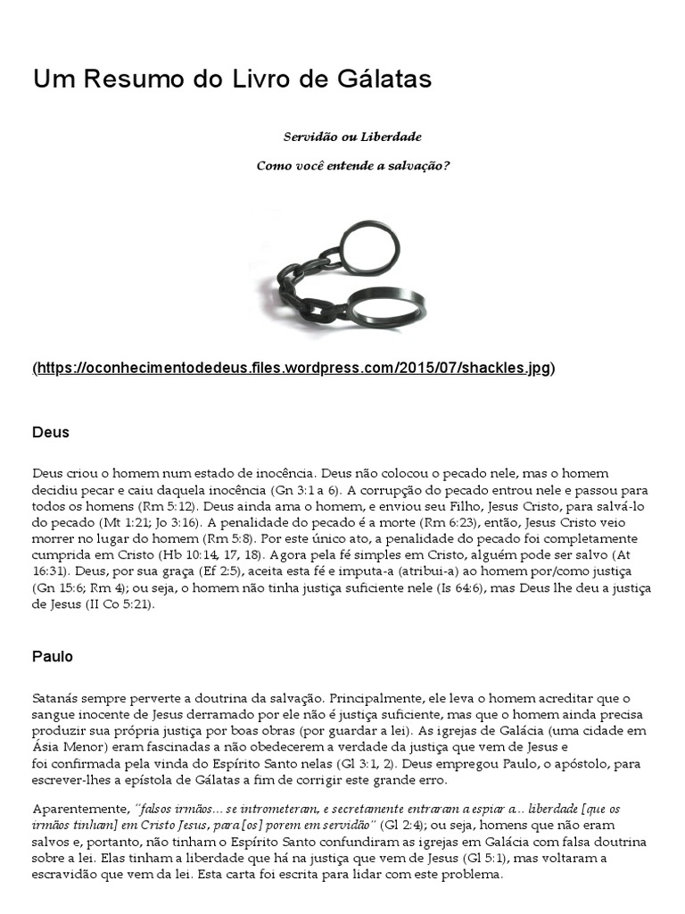 Um Resumo Do Livro de Gálatas Conhecendo Deus PDF Pecado Jesus