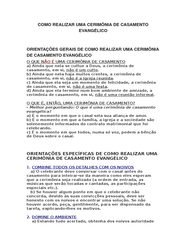 Orientações completas para realizar uma cerimônia de casamento evangélica PDF Casamento